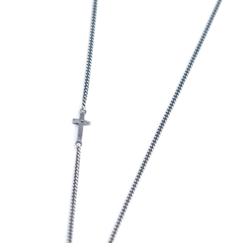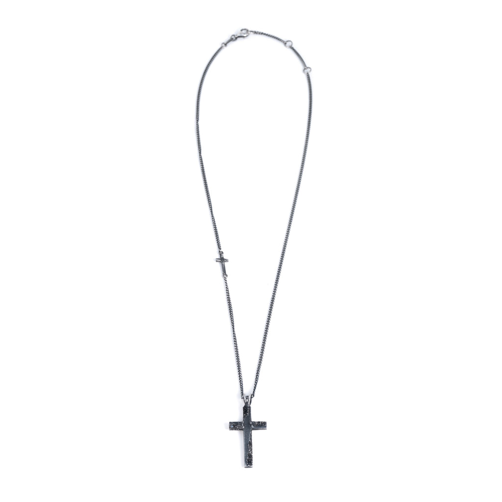 The new and improved Cross Necklace combines a more classic cross with the silver oxidized imperfect details, plus black diamonds set throughout the cross.
